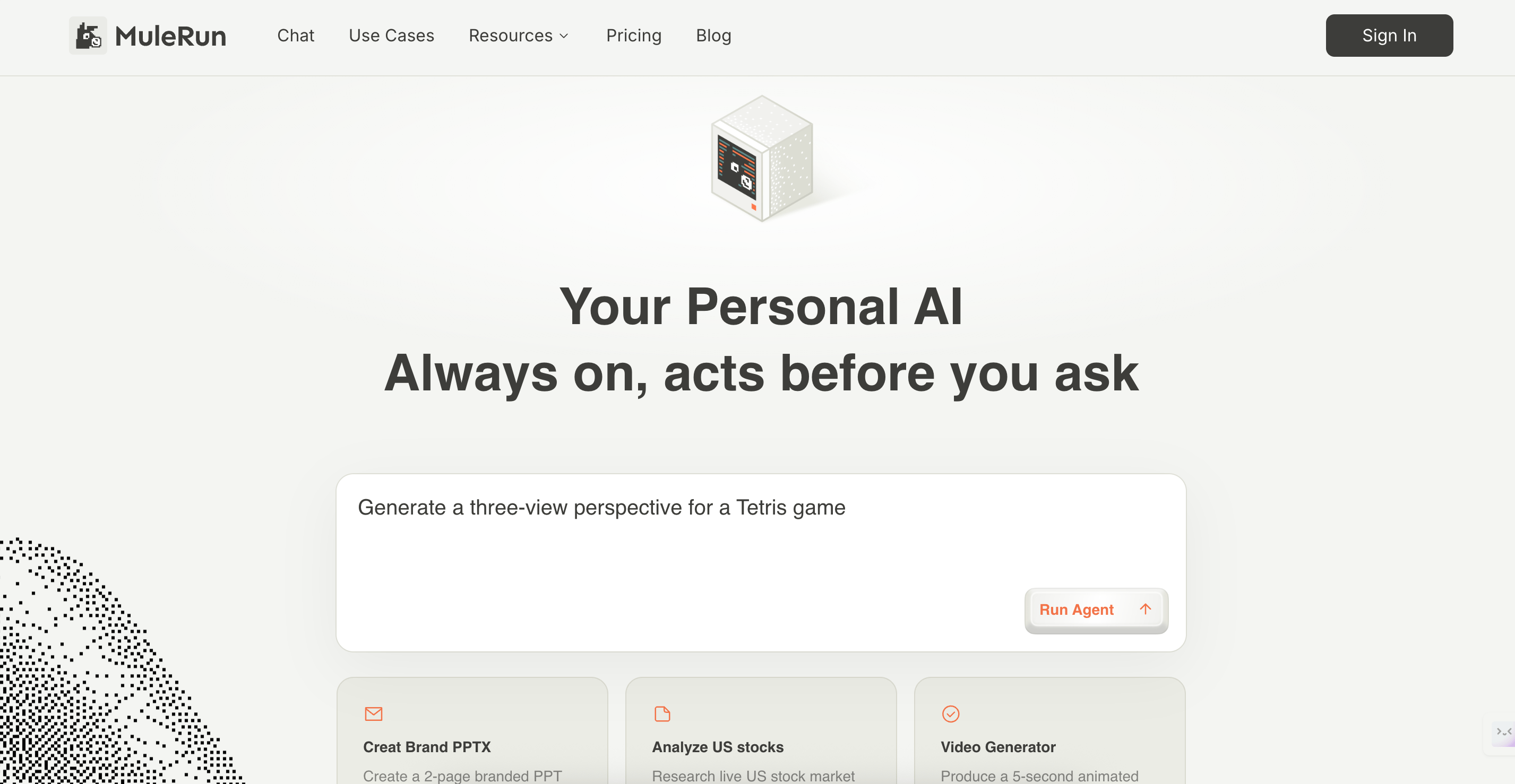 MuleRun is an AI agent marketplace where you can hire specialized bots to handle complex business workflows and research 24/7.